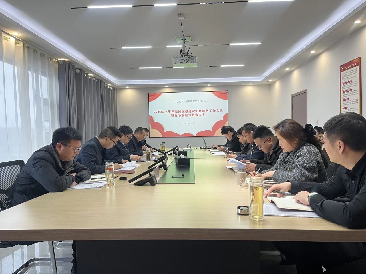 1月11日,城发集团组织召开“学习贯彻全会精神,加快企业转型发展”1月份“5+N”主题党日活动。集团党支部书记、董事长段栋主持会议,集团领导班子成员、党支部全体党员、入党积极分子、发展对象以及中层干部参加会议。会议开始,在党支部书记段栋同志的带领下,集团全体党员面向党旗重温入党誓词。接下来,诵读经典环节,全体党员、干部深入学习了市委十二届九次全会暨市委经济工作会议精神,深刻领会了开封市 “十五五”发展规划的战略部署、2026年经济工作的重点任务,以及“十个方面重点任务”等核心要求。随后,全体党员缴纳当月党费。活动最后,参会人员集中观看了市委十二届九次全会暨市委经济工作会议视频,更加深入地了解了会议部署的发展方向与工作要求,感受开封市高质量发展的战略部署与奋进姿态。