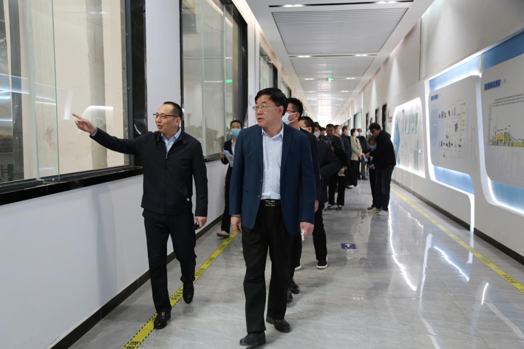 黄腾一行在参观走廊听取了环保能源公司关于该项目建设运营情况的介绍后,询问产业资源化利用的创新成果,并实地参观了污泥和餐厨废弃物处理主厂房,详细询问了开发工艺、运行原理。