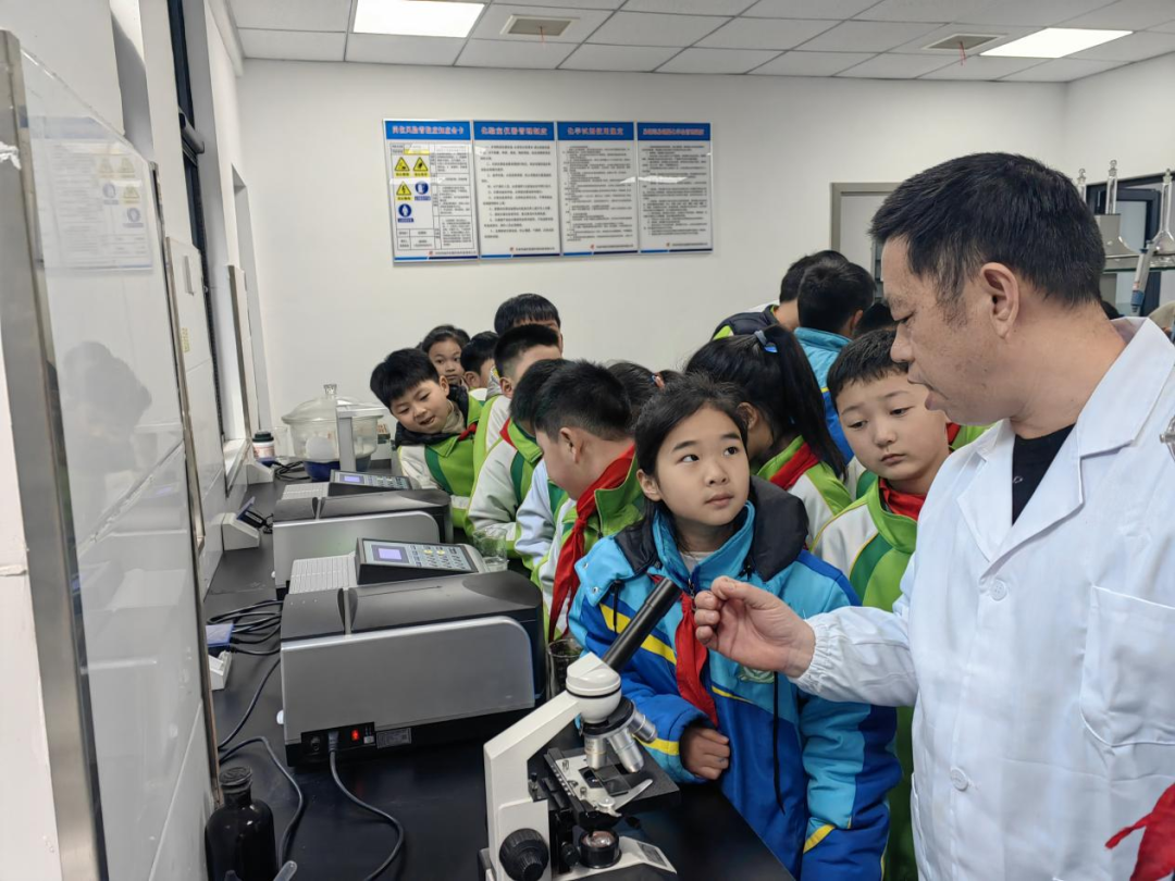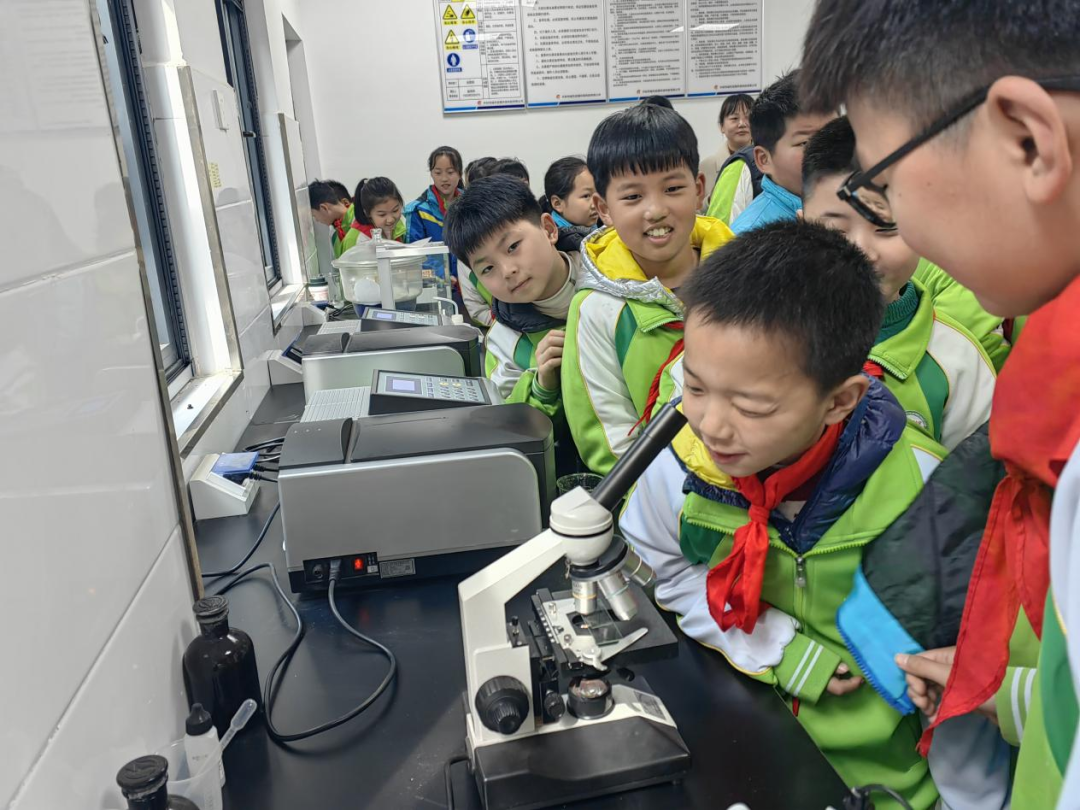 “我要看!我要看!老师,让我先看一下吧!”同学们兴奋地喊着,迫不及待地想要一探究竟。在工作人员的引领下,他们来到了化验室。在滤布滤池深度处理工艺处,工作人员熟练地采集过滤样本,然后带回化验室进行化验。同学们紧紧地围在一起,眼中闪烁着好奇的光芒。当样本放在显微镜下时,同学们都踊跃地凑上前去,透过目镜,他们近距离地观察着过滤成果和微生物,仿佛进入了一个奇妙的微观世界。他们兴奋地交流着自己的发现,脸上洋溢着满足的笑容。孩子们对知识的渴望和对探索的热情,让人不禁感动。