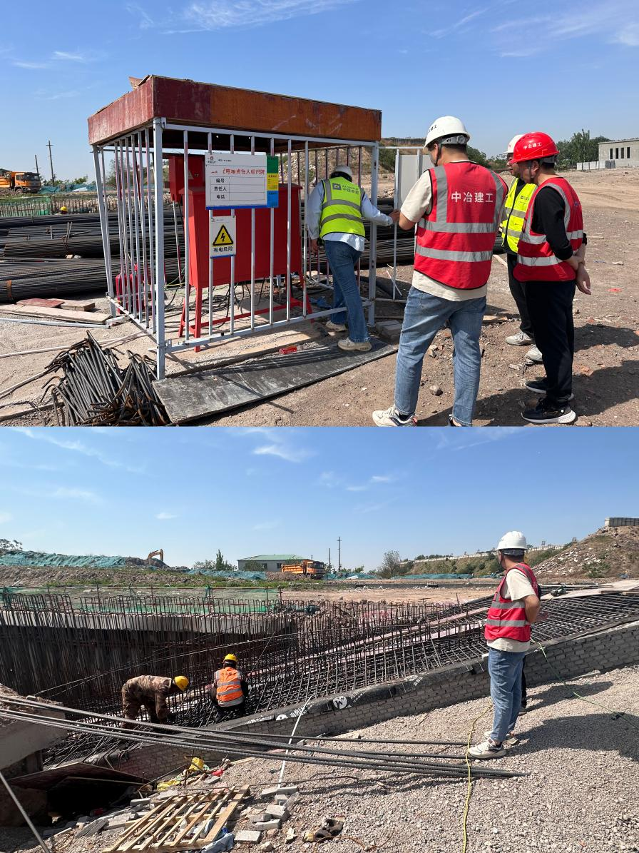 此次安全隐患排查重点围绕现场展开,在做好应急预案的同时成立专项小组,对汛期排水管道、沙袋、抽水泵完成检查、铺设、组装。对吊装作业、有限空间作业设置双监护岗并严格执行“通风-检测-审批”三重防护机制。针对节日期间持续施工的吊装、基坑支护等高风险作业,加强了边坡监测及支护结构巡查,落实防坍塌措施。全面检修临时用电线路、配电箱,规范接地保护及漏电开关配置并完成临建防风加固。