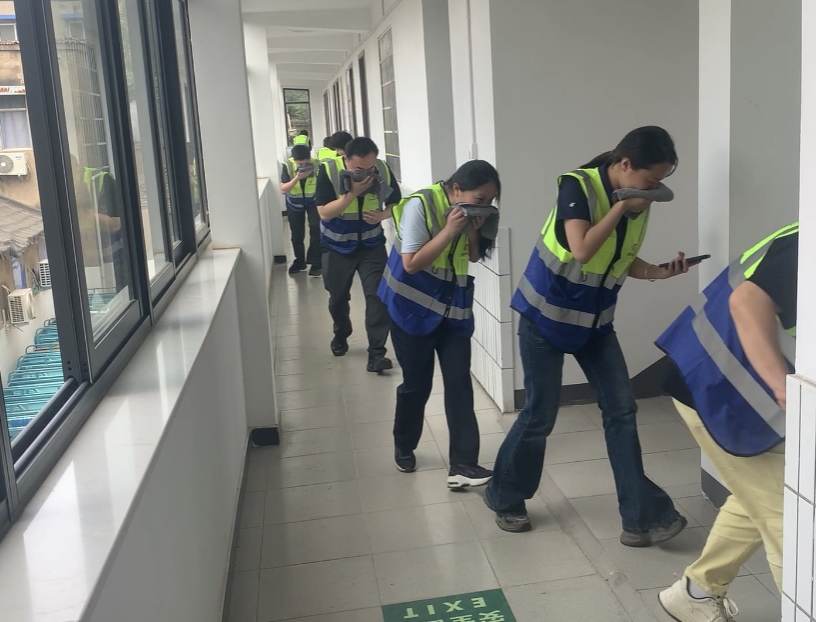 演练过程中,各小组严格按照既定预案,各司其职、协同配合,现场秩序井然。从消防知识的生动讲解,到火灾警报拉响后的迅速反应;从有条不紊的应急疏散,到紧张有序的火灾扑救与伤员救护,每一个环节都紧密衔接、规范高效,充分展现了全体人员良好的应急素养和团队协作能力。