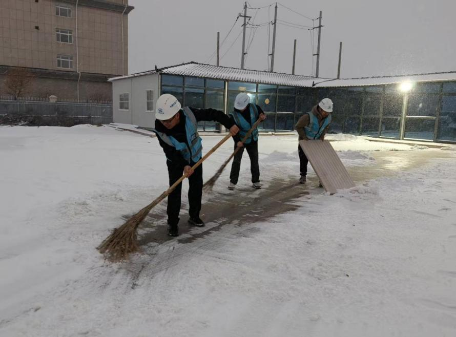污泥和餐厨废弃物综合利用厂区快速启动极端天气应急响应机制,各部门职工分工协作、不畏严寒,手持除雪工具对厂区主干道、餐厨及污泥卸料间门前、各仓库门前等关键区域进行地毯式清扫,同时安排专人实时巡查路况,及时处理新增积雪和薄冰,高效消除安全隐患,全力保障能源生产“不断档”、人员通行“无阻碍”。